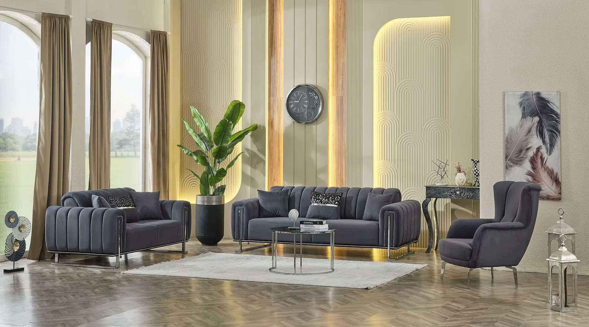 Elevate your living space with the Coeur de Lion Sofa Set, a perfect blend of elegance, comfort, and functionality. Handcrafted in Türkiye, this set is upholstered in high-quality velvet fabric, offering a soft touch and a luxurious look that transforms any interior.
