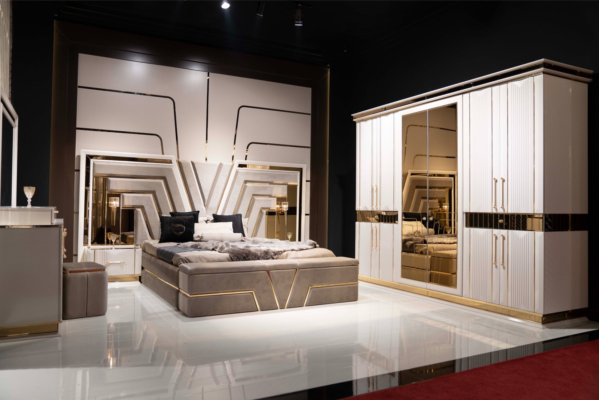 Redefine bedroom elegance with the Luxury Turkish Molino Bed Set, a masterpiece of Turkish craftsmanship blended with modern luxury. Every detail is designed to impress, with rose gold glass accents that add a radiant glow and a matching puff for ultimate style and comfort.