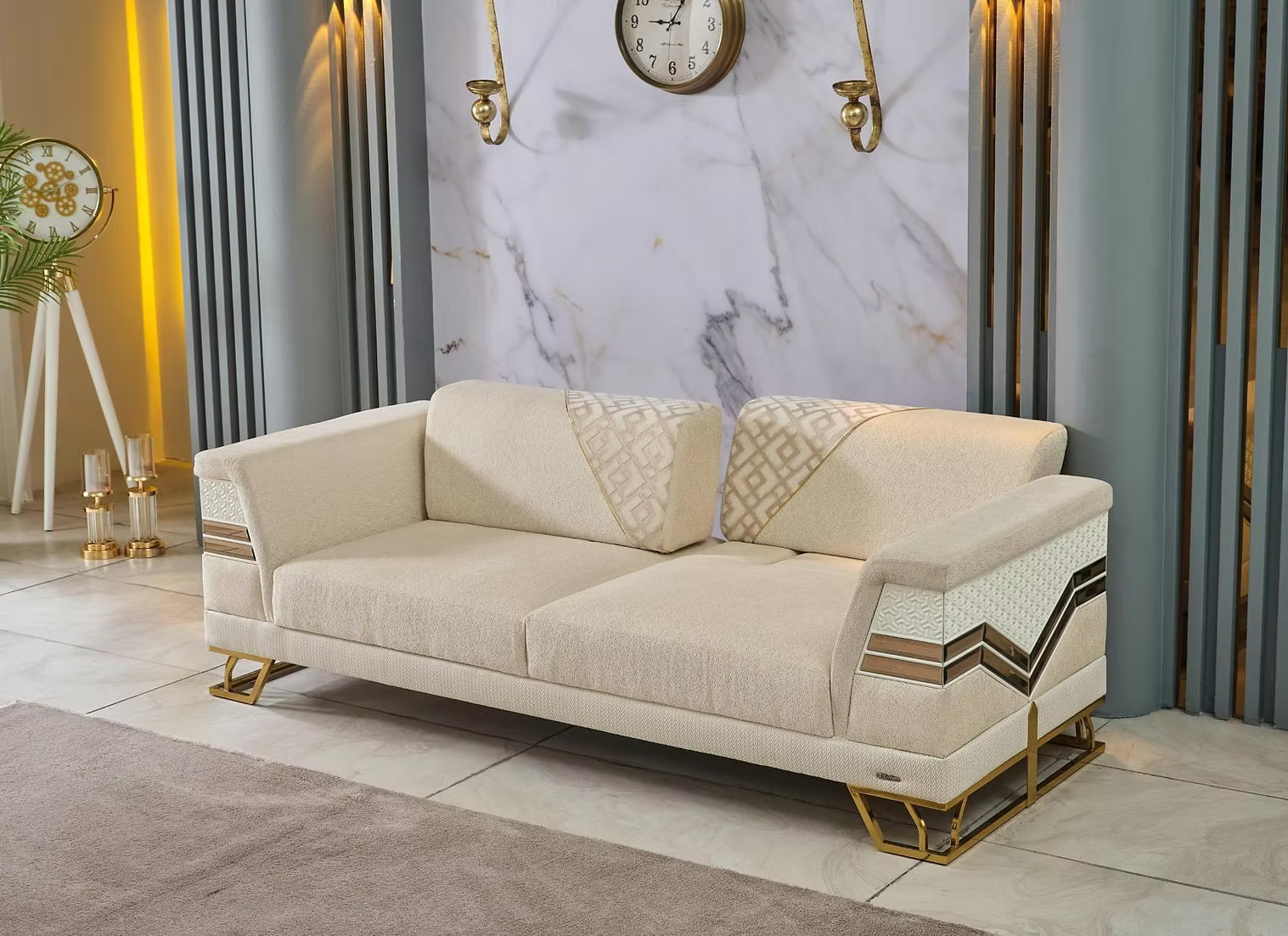 The Turkish Luxury Roy Beige & Gold Sofa Set is more than seating—it’s a statement of refined taste, comfort, and grandeur. Perfect for those who desire a living space that exudes both sophistication and warmth.