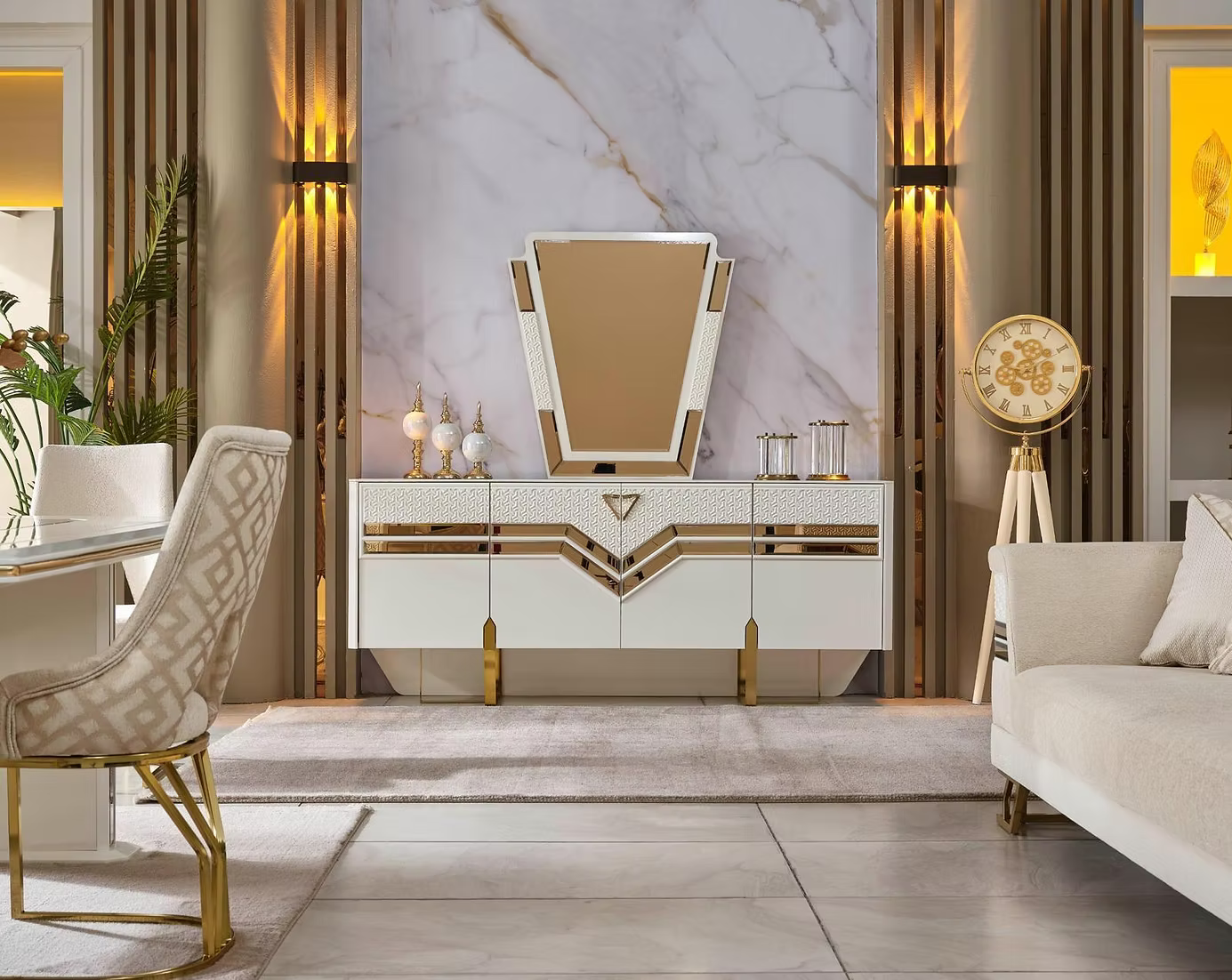 The Roy Turkish Mirror is a statement of elegance and refinement. Designed with a beautifully crafted frame featuring Turkish-inspired artistry, it enhances any room with light and depth. Whether paired with the console or placed as a standalone accent, this mirror adds a touch of luxury and sophistication to your home décor.